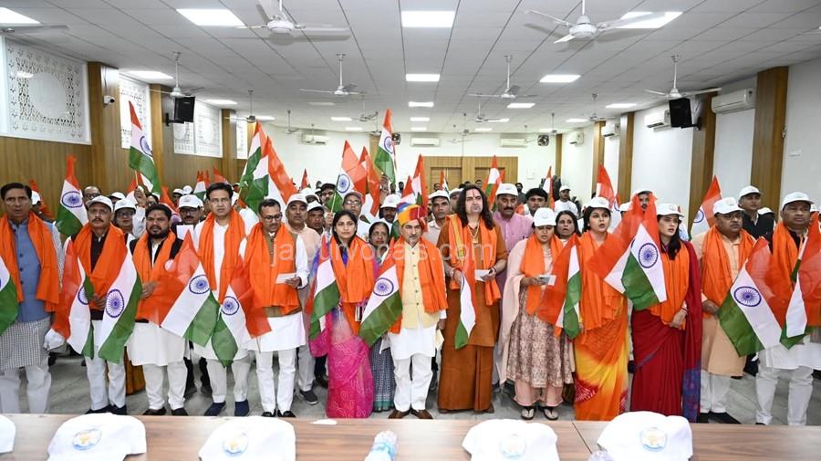 भाजपा प्रदेश अध्यक्ष मदन राठौड़ ने कहा कि आज पूरे देश में जिस प्रकार देशभक्ति का सैलाब उमड़ा है, वह प्रेरणादायक है। यह राजनीतिक रूप से निरपेक्ष कार्यक्रम है, जिसे हमें जागृति अभियान के रूप में देखना चाहिए, उन्होंने कहा कि वर्ष 1875 का विशेष महत्व है, इसी वर्ष सरदार वल्लभभाई पटेल का जन्म हुआ, भगवान बिरसा मुंडा का जन्म हुआ और 1875 को ही बंकिम चंद्र चट्टोपाध्याय ने वंदे मातरम् की रचना की थी। राष्ट्रीय गीत वंदे मातरम् के गौरवशाली 150 वर्ष पूर्ण होने के उपलक्ष्य में आयोजित इस कार्यक्रम में भाजपा परिवार के पदाधिकारियों, जनप्रतिनिधियों एवं कार्यकर्ताओं ने उत्साहपूर्वक भाग लिया। इस अवसर पर अभियान के प्रदेश संयोजक भूपेन्द्र सैनी, सह संयोजक प्रेम सिंह, प्रीति शर्मा, भाजपा प्रदेश मंत्री पिंकेश पोरवाल, विधायक बाल मुकुंदाचार्य महाराज, भाजपा प्रदेश कार्यालय प्रभारी मुकेश पारीक, सह प्रभारी भवानी शंकर शर्मा सहित भाजपा के वरिष्ठ नेता, जनप्रतिनिधि, पदाधिकारी एवं कार्यालय परिवार उपस्थित रहे। कार्यक्रम का समापन राष्ट्रगान एवं भारत माता की जय के उद्घोष के साथ हुआ।