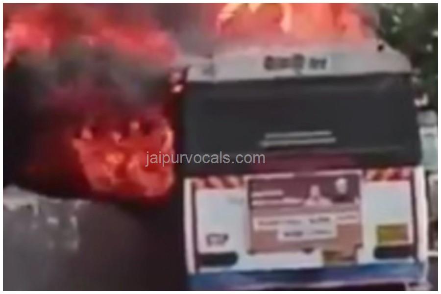 जयपुर में चलती रोडवेज बस में लगी भीषण आग, 70 यात्रियों की जान बची