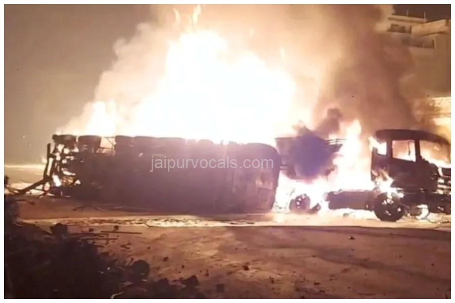 जयपुर हाईवे पर केमिकल टैंकर-ट्रक भिड़ंत, बड़ा हादसा टला