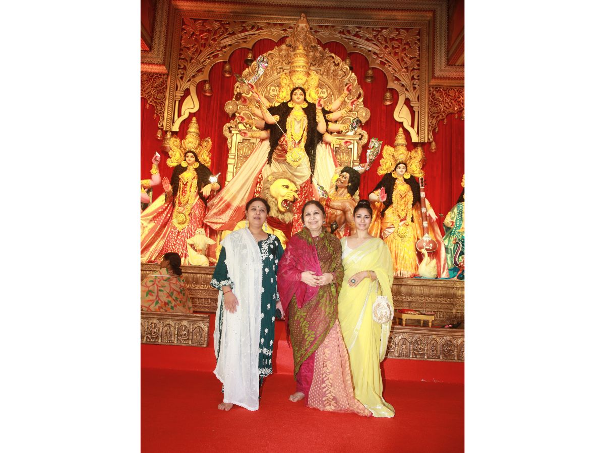 Kajol With Son Yug And Daughter Nysa Devgan Grace The North Bombay Sarbojanin Durga Puja