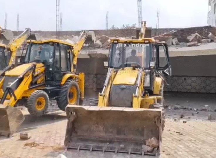 संभल में तालाब की जमीन पर बने मैरिज हॉल पर चला बुलडोजर, लोगों ने ...
