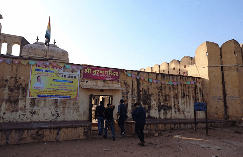 राजधानी जयपुर के प्रमुख मंदिरों में कई दिलचस्प बातें हैं जो मंदिर के इतिहास और विशेषताओं के लिए खास हैं। शहर की भूमि भी भगवान श्रीकृष्ण के चरणों में पवित्र है। इसे महाराजा मानसिंह ने बनवाया था: जयगढ़ और नाहरगढ़ के बीच स्थित चरण मंदिर इतना भव्य है कि यह किसी प्राचीन महल जैसा दिखता है। किंवदंती के अनुसार, इस मंदिर का निर्माण महाराजा मानसिंह प्रथम ने कछवाहा शैली के किले की संरचना के साथ करवाया था। जिसे स्वयं भगवान श्री कृष्ण ने स्वप्न में बताया था कि इस स्थान पर उनके और उनकी गायों के पैरों के निशान हैं। तब राजा ने इस जगह की खोज की और अंबिका वन यानी आमेर की पहाड़ियों पर इस जगह को ढूंढते हुए वह अपने पुरोहितों के साथ यहां पहुंचे। पुजारियों ने कहा कि ये मूर्तियाँ द्वापर युग की थीं और उन्होंने उन्हें श्रीमद्भागवत कथा के दसवें उपदेश के चौंतीसवें अध्याय में वर्णित विद्याधर सुदर्शन के मोक्ष की कहानी सुनाई। हजारों वर्ष पहले कृष्ण मथुरा से द्वारका जाते समय आमेर से होकर गुजरे थे। वह अपने मित्रों, गायों और नन्द बाबा के साथ आये। जब यहां रहने वाले एक अजगर ने नंद बाबा का पैर पकड़ लिया। तो श्रीकृष्ण ने अजगर को अपने पैर से स्पर्श किया और अजगर की योनि छूट गई। मंदिर में भगवान कृष्ण के दाहिने पैर की प्राकृतिक छाप और द्वापर युग की उनकी गायों के पांच खुरों की पूजा की जाती है। यहां आने वाले भक्त अपनी श्रद्धा से यहां भंडारा आदि का भी आयोजन करते हैं। यहां कदम्ब के पेड़ भी बहुत हैं। यहां प्रतिदिन सैकड़ों श्रद्धालु पहुंचते हैं। नाहरगढ़ की पहाड़ियों में स्थित चरण मंदिर का पहाड़ी वन क्षेत्र वह स्थान है जहां भगवान कृष्ण के चरण पड़े थे। इसके बाद इस स्थान का नाम चरण मंदिर हो गया। मंदिर में भगवान कृष्ण के दाहिने पैर के प्राकृतिक पैरों के निशान और उनकी गायों के पांच खुर के निशान की पूजा की जाती है। लोक मान्यताओं और ग्रंथों के अनुसार आज का विराटनगर द्वापर युग में विराट का एक जनपद था। श्री कृष्ण अपने वनवास और भ्रमण के दौरान कई बार अपने प्रिय पांडवों से मिलने यहां आये। उनके खोज भूमि पर आने का प्रमाण अम्बिका वन (आमेर) का भागवत प्रसंग भी है। द्वापर युग में नाहरगढ़ के निकट चरण मंदिर का पहाड़ी वन क्षेत्र अम्बिका वन के नाम से जाना जाता था। श्री कृष्ण ग्वालों और नंदबा के साथ आये भागवत पुराण के अनुसार, भगवान कृष्ण नंदबाबा और ग्वालों के साथ अंबिका वन में आए थे। उन्होंने अम्बिकेश्वर महादेव जी की पूजा की। अंबिकेश्वर महादेव मंदिर आज भी आमेर में मौजूद है। अंबिका वन में कृष्ण के साथ आए नंदबाबा को अजगर ने पकड़ लिया था तब श्रीकृष्ण ने नंदबाबा को अजगर से मुक्त कराया था। भागवत के अनुसार वह ड्रैगन इंद्र के पुत्र सुदर्शन के रूप म