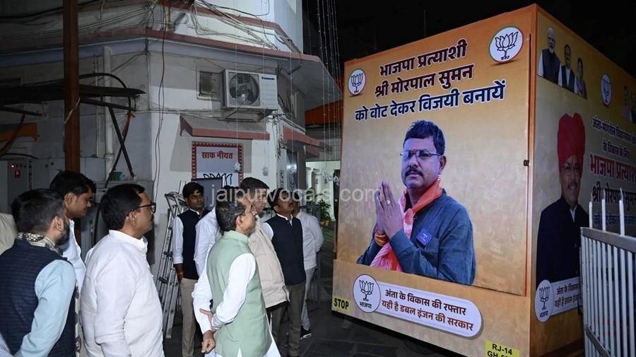 भाजपा प्रदेश अध्यक्ष मदन राठौड़ ने कहा कि भाजपा की सरकार ने हमेशा जनता के हितों को सर्वोपरि रखा है। प्रधानमंत्री नरेंद्र मोदी के नेतृत्व में देश ने अभूतपूर्व विकास किया है और राजस्थान में भी भाजपा जनता के विश्वास पर खरा उतरने के लिए प्रतिबद्ध है। उन्होंने कहा कि प्रचार रथ गांव-गांव जाकर जनता को केंद्र व राज्य सरकार की योजनाओं की जानकारी देंगे और अंता विधानसभा क्षेत्र में भाजपा की नीतियों व संकल्पों को पहुंचाएंगे। प्रदेश अध्यक्ष मदन राठौड़ ने कार्यकर्ताओं से आह्वान किया कि वे पूरे उत्साह और अनुशासन के साथ पार्टी के संदेश को हर घर तक पहुंचाएं। उन्होंने विश्वास व्यक्त किया कि अंता उपचुनाव में जनता भाजपा के विकास और सुशासन के पक्ष में अपना मत देकर पार्टी को भारी बहुमत से विजयी बनाएगी। इस अवसर पर प्रदेश उपाध्यक्ष नारायण पंचारिया, मुकेश दाधीच, नाहर सिंह जोधा, कोषाध्यक्ष पंकज गुप्ता, कार्यालय प्रभारी मुकेश पारीक, सह प्रभारी भवानी शंकर शर्मा, रजनीश चनाना, प्रदेश मीडिया संयोजक प्रमोद वशिष्ठ, सोशल मीडिया संयोजक हीरेंद्र कौशिक, आईटी संयोजक अविनाश जोशी सहित कई पदाधिकारी एवं कार्यकर्ता उपस्थित रहे।